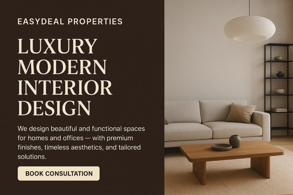 Your Home should inspire comfort, and reflect who you are. At EasyDeal Properties we design homes that balance style with smart usability – ensuring every room feels luxurious, warm, and intelligently planned.
